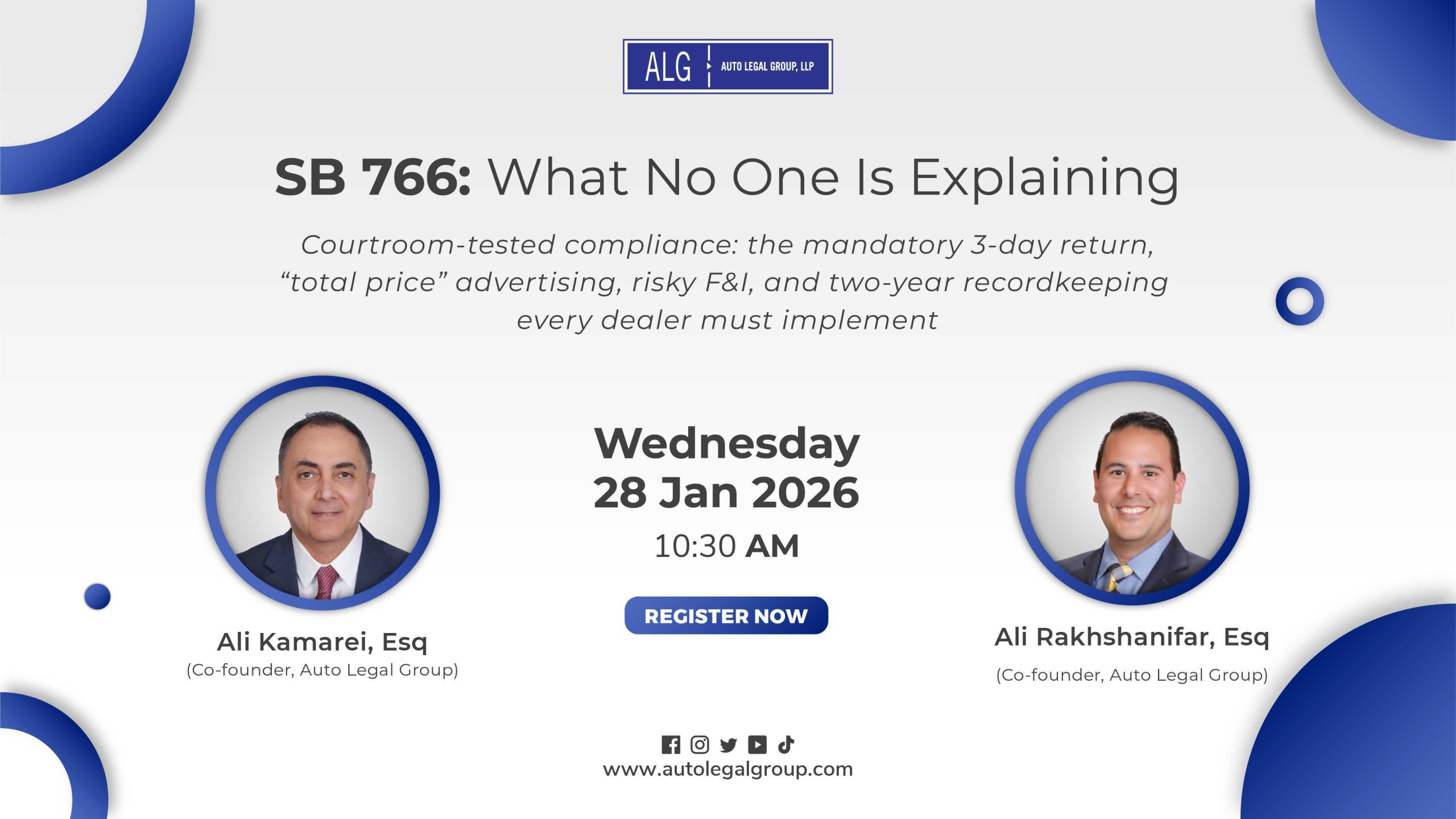 Any testimonial or endorsement does not constitute a guarantee, warranty, or prediction regarding the outcome of your legal matter whether you decide to be represented by ALG or not. The information is intended for general informational purposes only. The information is not the provision of legal services, and accessing such information, or corresponding with or asking questions, or otherwise using the Services, does not create an attorney-client relationship between you and ALG, or you and any lawyer.